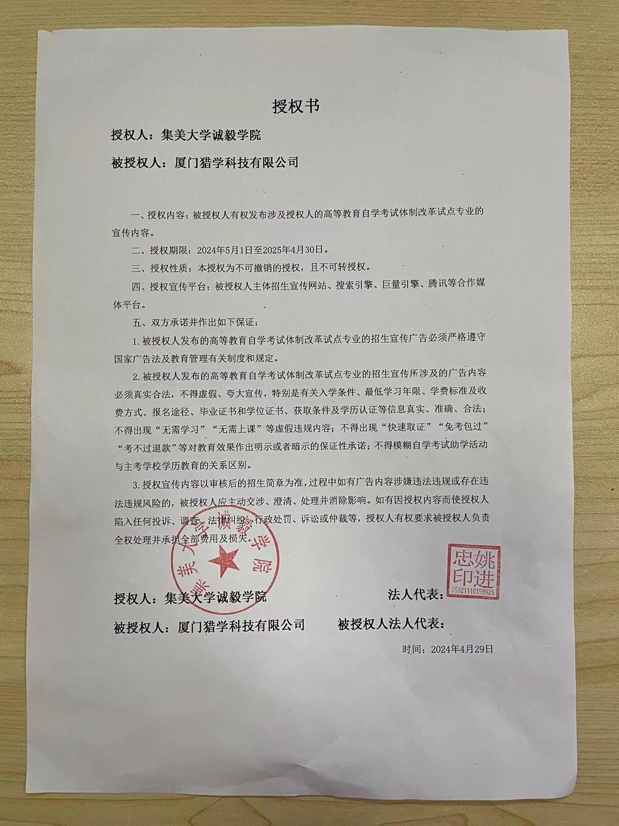 學生入學后,學校根據各專業開考計劃進行教學安排,組織學生參加考試。學生通過國家或省統一組織的考試,成績合格者,將獲得相應主考學校集美大學、集美大學誠毅學院、華僑大學和省自考委聯合頒發、全國統一印制、教育部電子注冊的大專或本科畢業證書,國家承認學歷;符合相應主考學校授予成人高等教育本科畢業生學士學位相關規定的條件,可獲得相應主考學校成人高等教育本科學士學位。對于國家或省自考委規定的考試課程尚未全部合格者,發給相關的學業證明書。